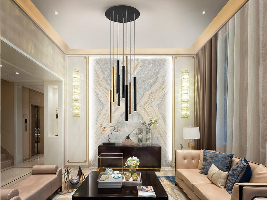 Фигура, изработена от фибростъкло и полиестерна смола, с луксозно ярко златно покритие. Декорирана е със сферични акрилни плафони с матов опалов завършек, които разпръскват мека и приятна светлина и придават изискан акцент на интериора.